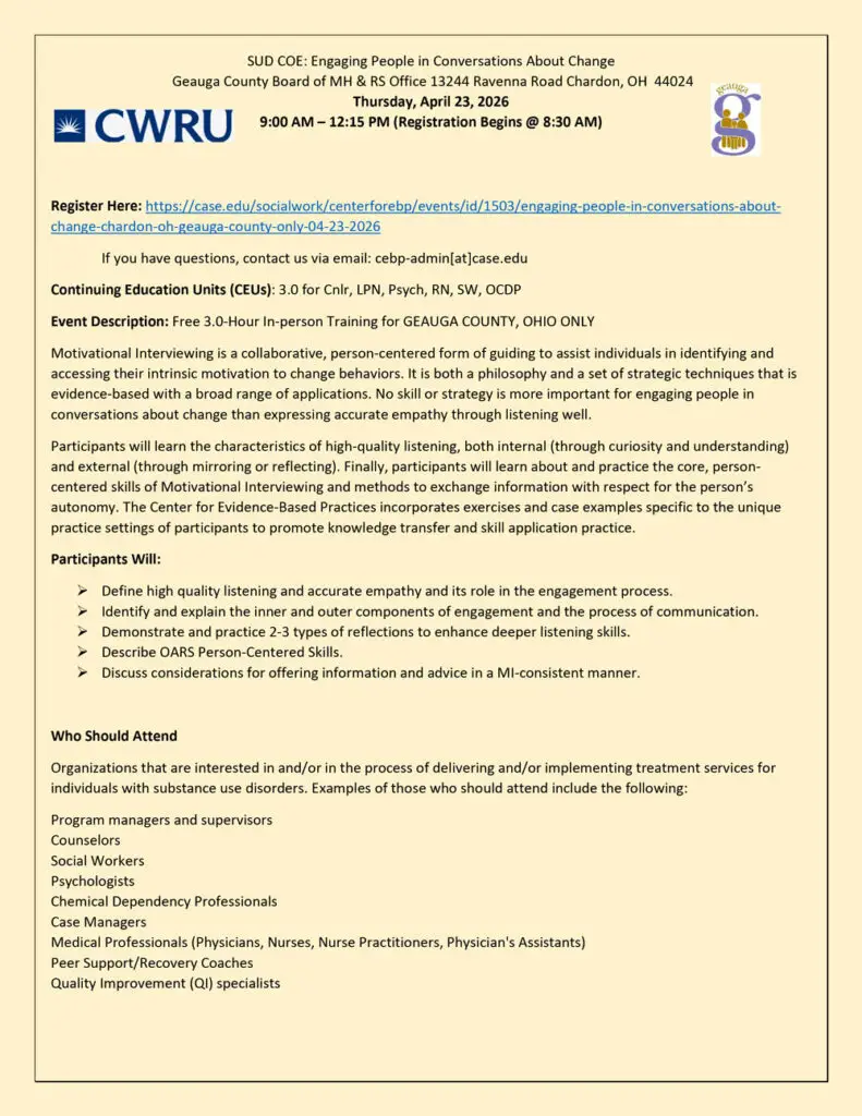 SUD COE: Engaging People in Conversations About Change [Chardon, OH] – GEAUGA COUNTY ONLY